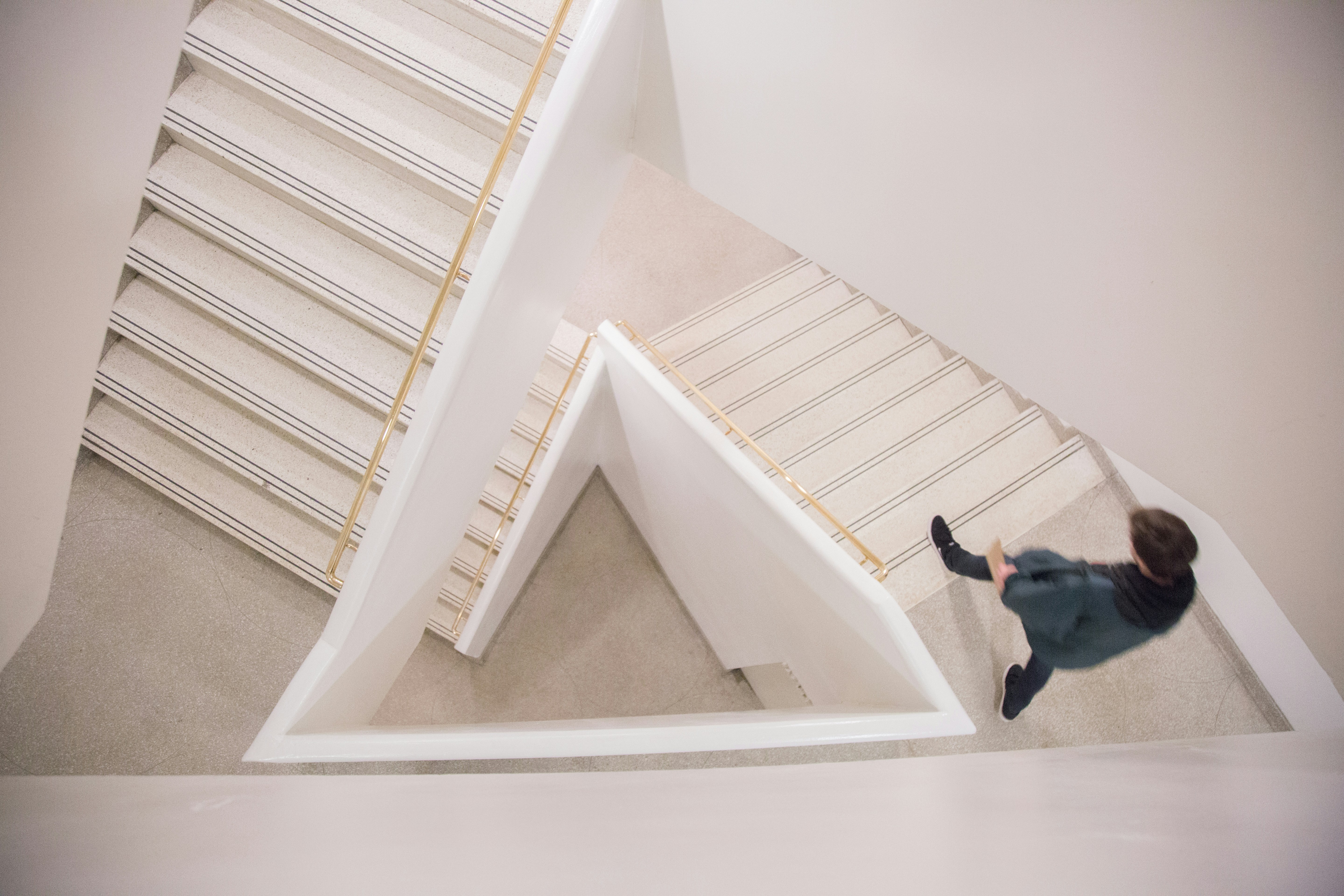 High angle: This photo is made high to show the form of the staircase